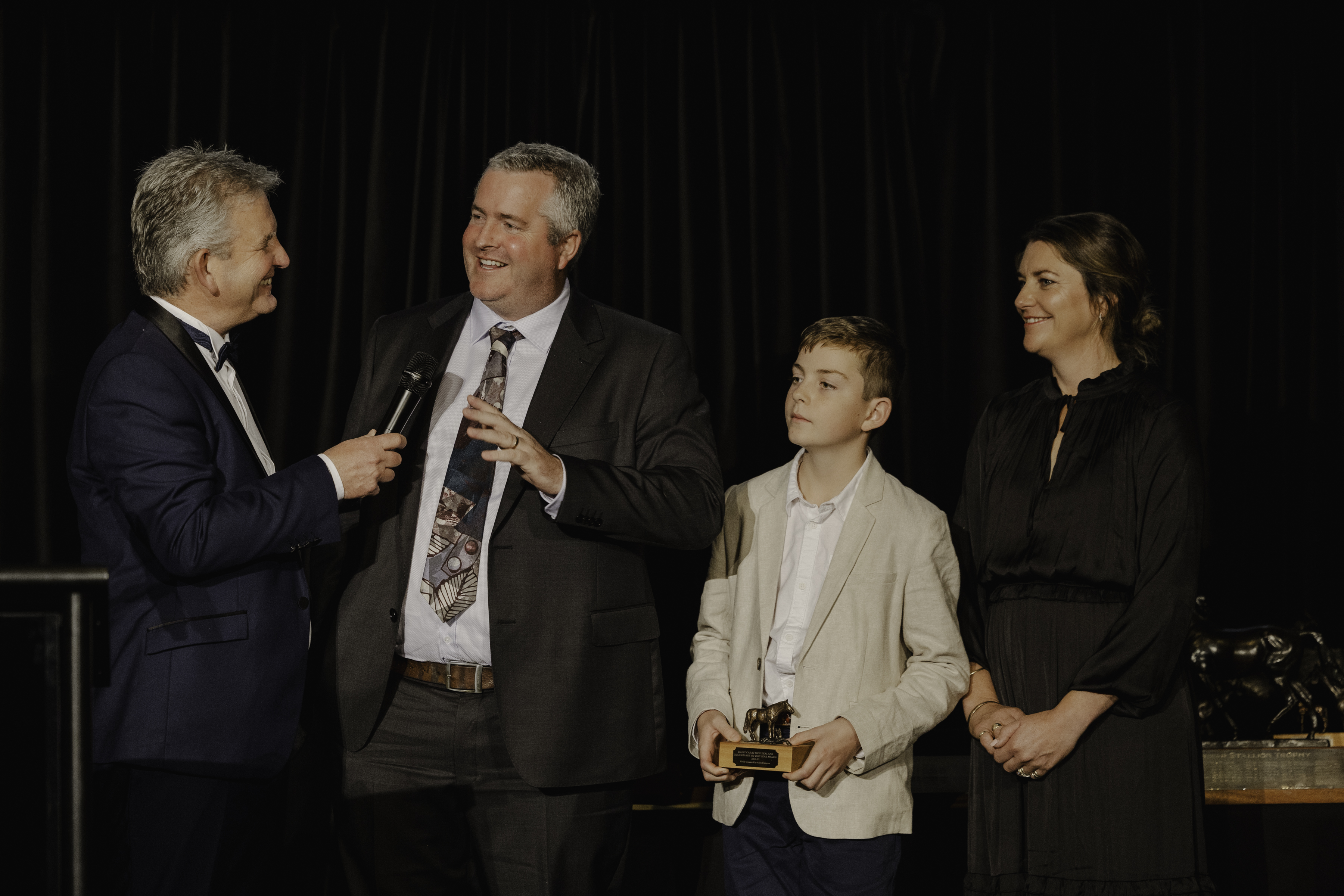 Group One winning trainer Fraser Auret collected trophies of a different variety on Saturday night as he took centre stage at the Property Brokers National Breeding Awards at the Sir Don Rowlands Centre in Cambridge.